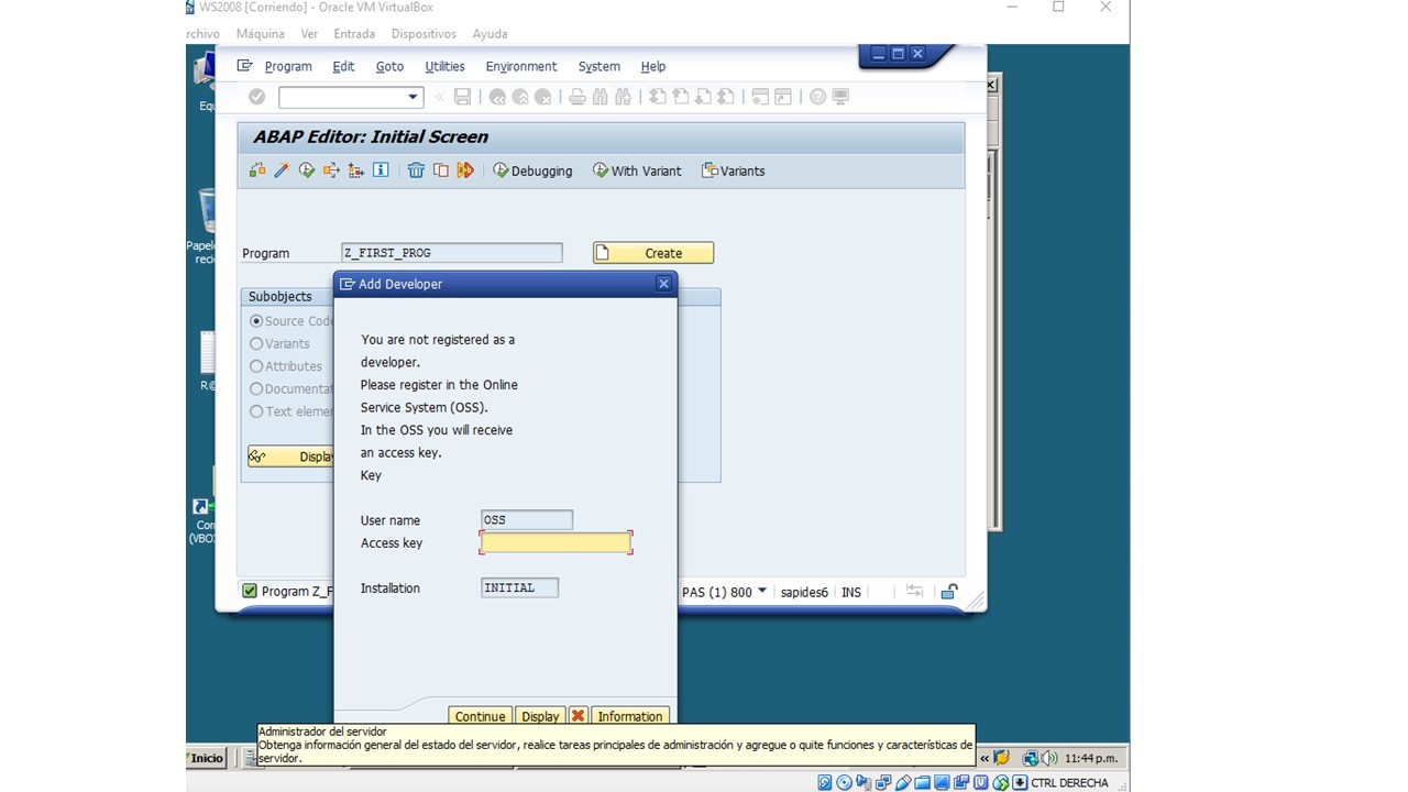 SAP GUI 7.40 para windows lo tengo en un servidor virtual con windows sever 2008 el Usuario que