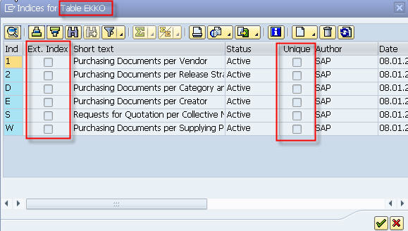 tienen el status activo, mi duda es ¿Qué significan los checks Ext. Index y Unique?
