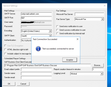 No logro el envió de correos con SAP BO 9.3 La prueba de Test se marca como satisfactoria