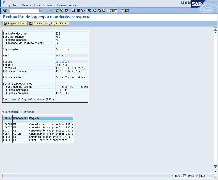 El tema es que no podemos terminar una copia remota de mandante de PRD a TEST. No podemos borrar el sistema de test por que el tiempo de borrado es demasiado largo (calculamos que tardaríamos unos tres días) y al hacer la copia hay cinco tablas que nos dan problemas, dando un time out en la copia.