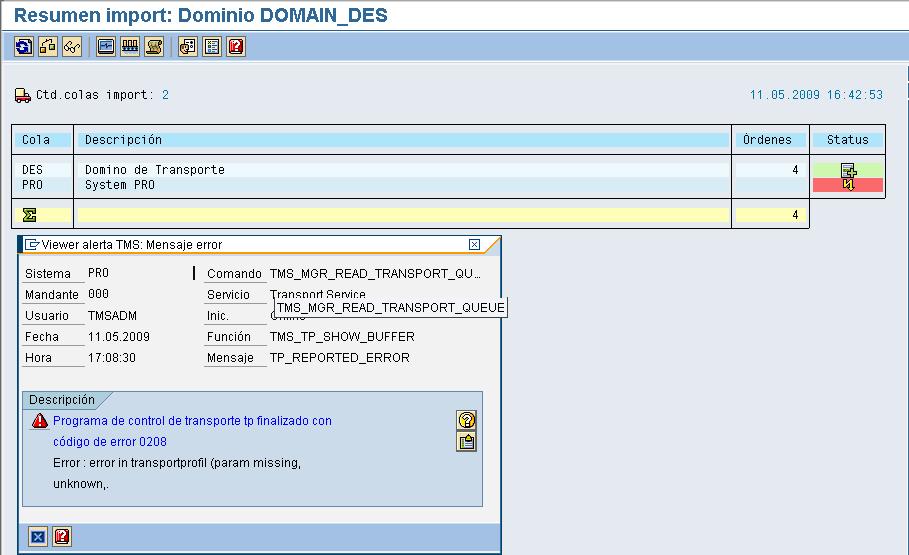 Buenos Dias:Este error me sale en el sistema de transporte....cabe mencionar que lo tengo sobre linux y oracle....y esto pasa cuando configuro el sistema de transporte pro...despues...al querere ver la lista..me marca este error, espero me puedan ayudar...gracias!!!!