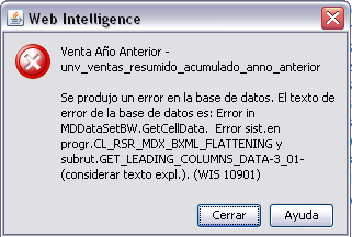 Estoy realizando un reporte en el WEBI InfoView y me está generando el siguiente error: