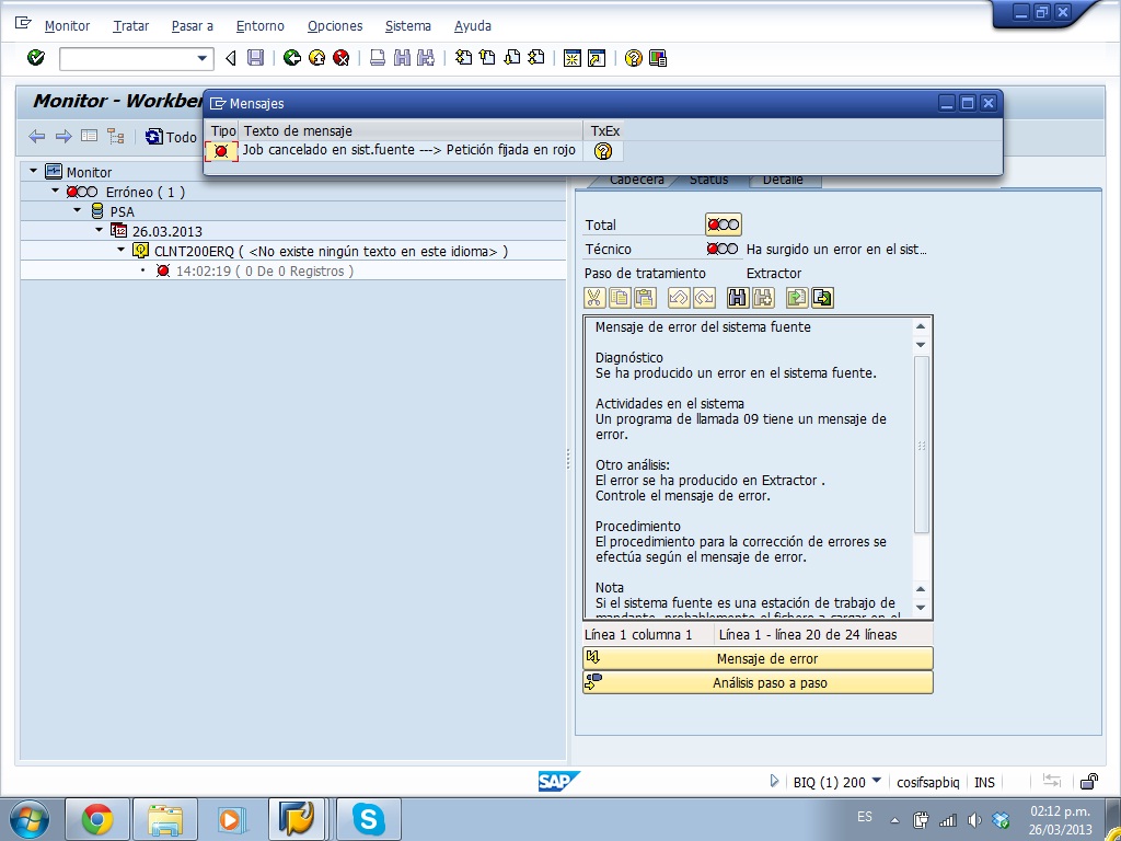 ESTOY EJECUTANDO UNA CADENA DE PROCESOS EN CALIDAD, PERO UNO DE MIS INFOPAQUETES ME TRUENA, ME SALE ESTE ERROR: