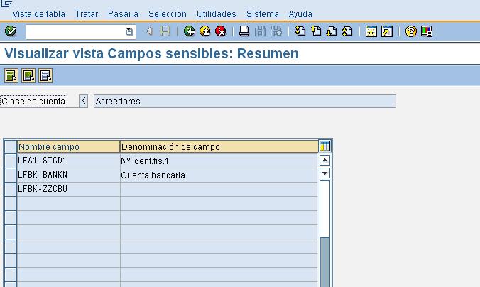 Tengo un problema con la definición de campos sensibles en la SPRO, a traves del item "Def.campos sensibles p.ppio.verif.p/2 o más pers.(deudores)" quiero ingresar un CAMPO SENSIBLE de la tabla LFBK y no me deja. Este campo lo ingresé en la LFBK a través de una estructura append en la cual coloco un CAMPO Z. Yo no sé si es porque es un campo Z o porque me falta configurar algo más para que SAP pueda ver este campo y tomarmelo como CAMPO SENSIBLE.