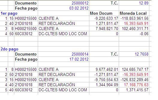 PEEERO SAP esta registrando el asiento que compensa la factura, reversando la primer retención y haciendo una partida por todo al tipo de cambio de la fecha del 2do pago por 17,168,776.63, lo cual no es correcto de acuerdo a lo que debe reportarse